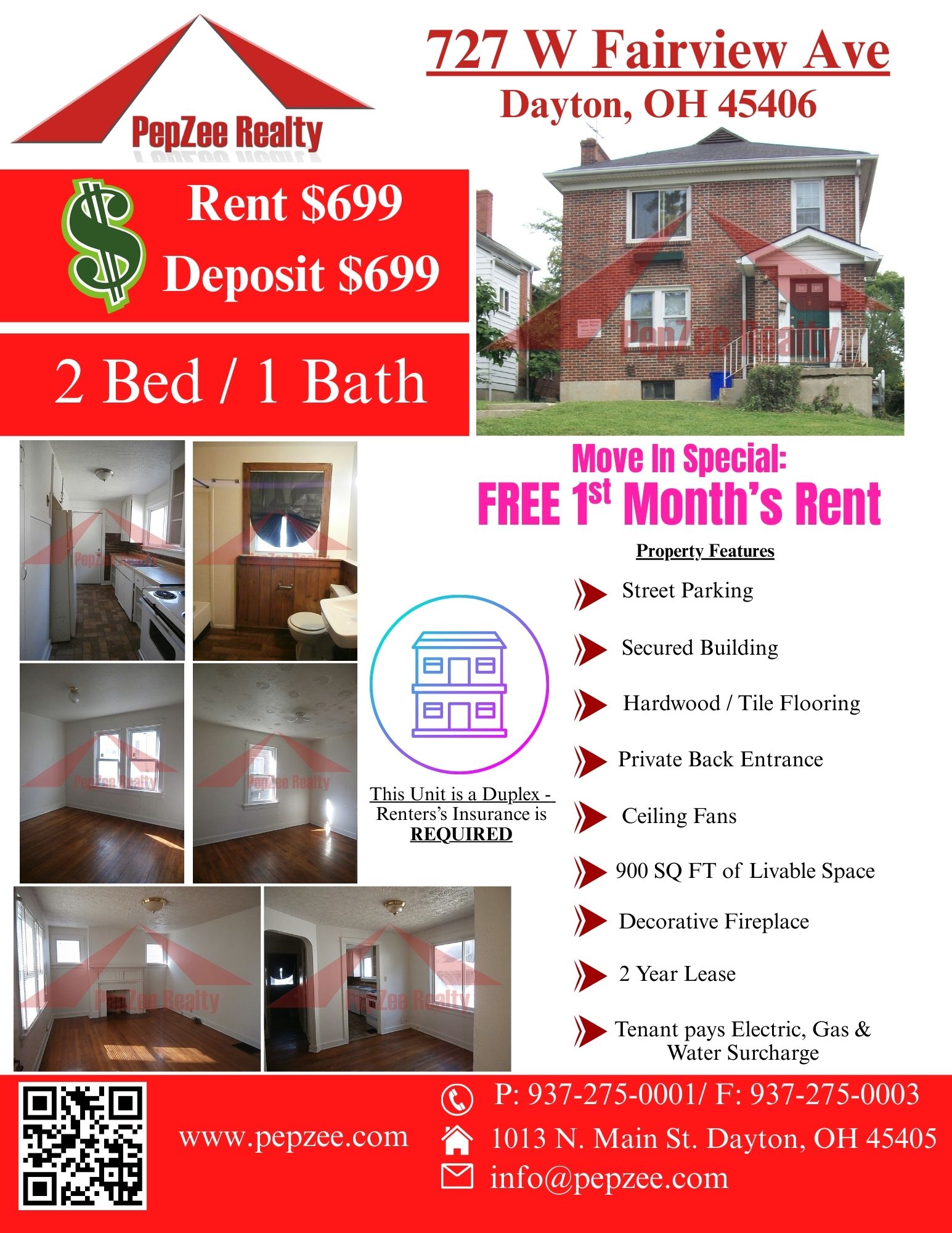 Rent $699 / Deposit $699